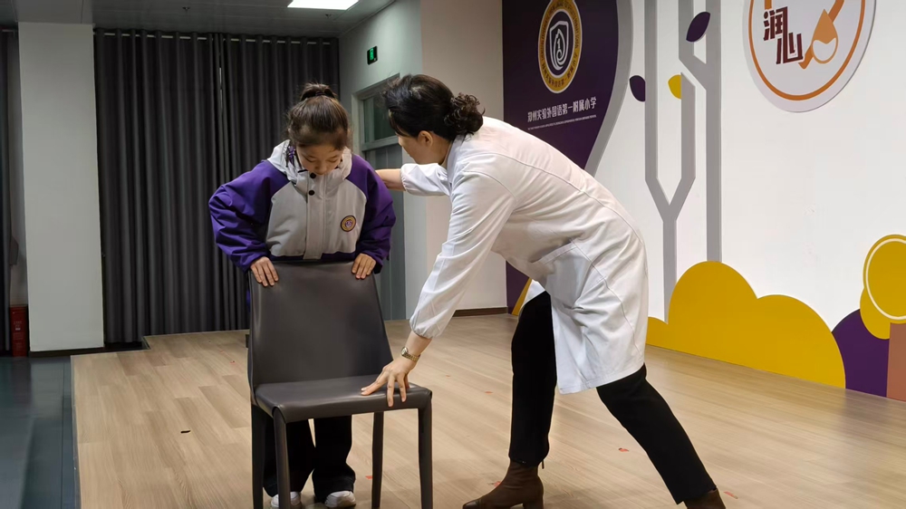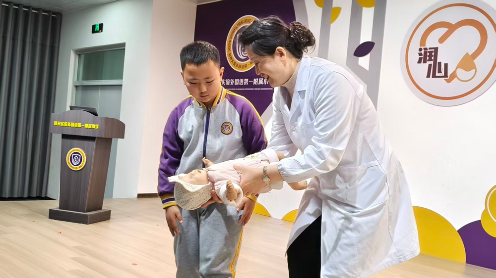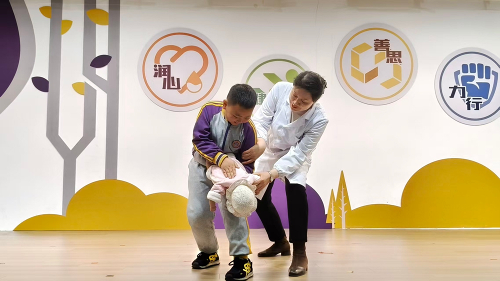 随后,郑州大学第三附属医院儿科主管护师、“二七区新时代最美护士”杜燕华结合模拟人偶演示,手把手教授海姆立克急救法等关键技能。专业医疗知识从医院走进课堂,从课本转化为孩子们触手可及的自护本领。